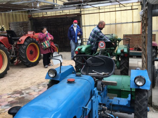 Man kam richtig ins Staunen über die alten, zum Teil wunderlichen Maschinen, wie zum Beispiel einen Einrad-Balkenmäher.