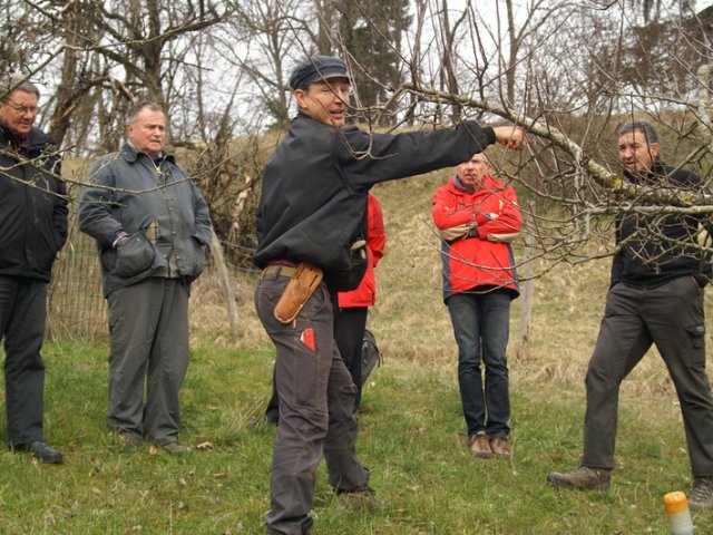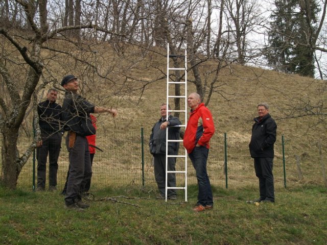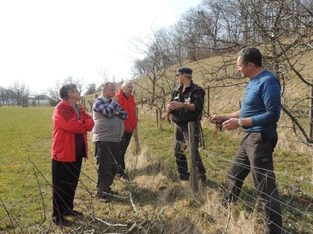 Am 12. März um 9:00 trafen sich 5 Kursteilnehmer und der Kursleiter Roland Roth in einem wunderbaren Garten in Zullwil um Apfel-, Kirsch- und Pflaumenbäume zu schneiden.