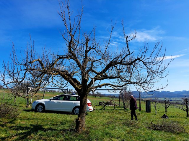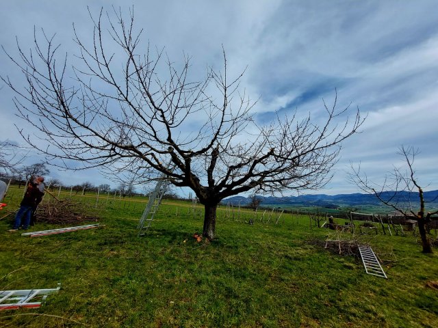Wie man den Bilder entnehmen kann wurde anständig "geholzt". Die Krohnen wurden ausgelichtet und Überbauungen entfernt, mit dem Ziel, dass die Bäume grössere und schönere Früchte tragen sollten.