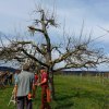 Zuerst wurden ein junger Birn- und ein Apfelbaum nacherzogen. Dabei wurde eifrig diskutiert, was denn der beste Weg sei um das Ziel um zukünftig eine schöne Baumkrone zu erhalten.