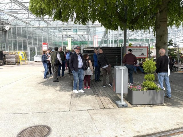 Dort stürmte die kauflustige Gesellschaft das Gartencenter Zulauf. Man hatte eindreiviertel Stunden Zeit um sich mit Pflanzen, Werkzeugen und Nippes einzudecken.