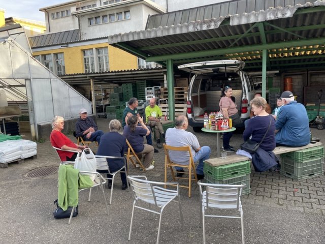 Markus erzählte uns zuerst wie er vor 10 Jahren die Geranien-Gärtnerei Hochuli (kurz vor dem Abriss) übernehmen konnte um daraus eine Gemüsegärtnerei zu machen.
