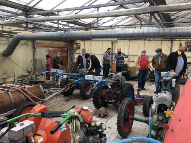 14 maskierte Vereinsmitglieder besuchten am 26. September 2020 die Traktoren Sammlung von "Grunder Schorsch" Georg Jäggi in Hölstein.