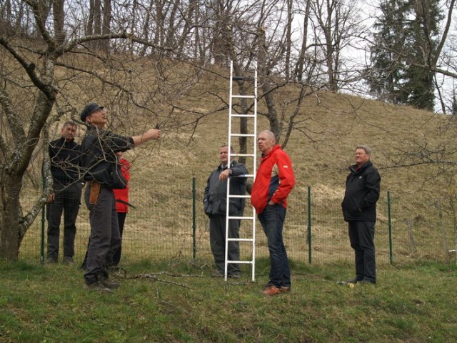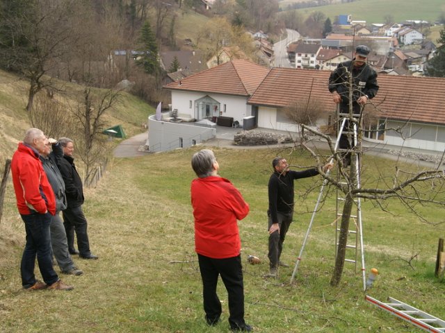 Am 12. März um 9:00 trafen sich 5 Kursteilnehmer und der Kursleiter Roland Roth in einem wunderbaren Garten in Zullwil um Apfel-, Kirsch- und Pflaumenbäume zu schneiden.