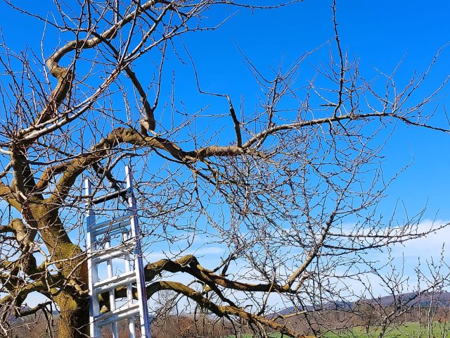 Wie man den Bilder entnehmen kann wurde anständig "geholzt". Die Krohnen wurden ausgelichtet und Überbauungen entfernt, mit dem Ziel, dass die Bäume grössere und schönere Früchte tragen sollten.