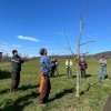 Zuerst wurden ein junger Birn- und ein Apfelbaum nacherzogen. Dabei wurde eifrig diskutiert, was denn der beste Weg sei um das Ziel um zukünftig eine schöne Baumkrone zu erhalten.